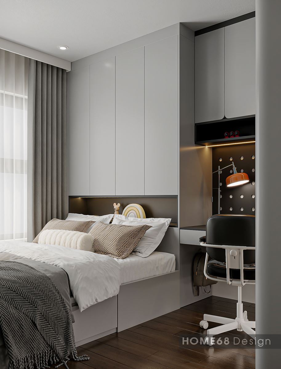 Không gian phòng ngủ con được thiết kế theo hướng linh hoạt và tiện nghi, phù hợp với nhu cầu sinh hoạt, học tập và nghỉ ngơi.