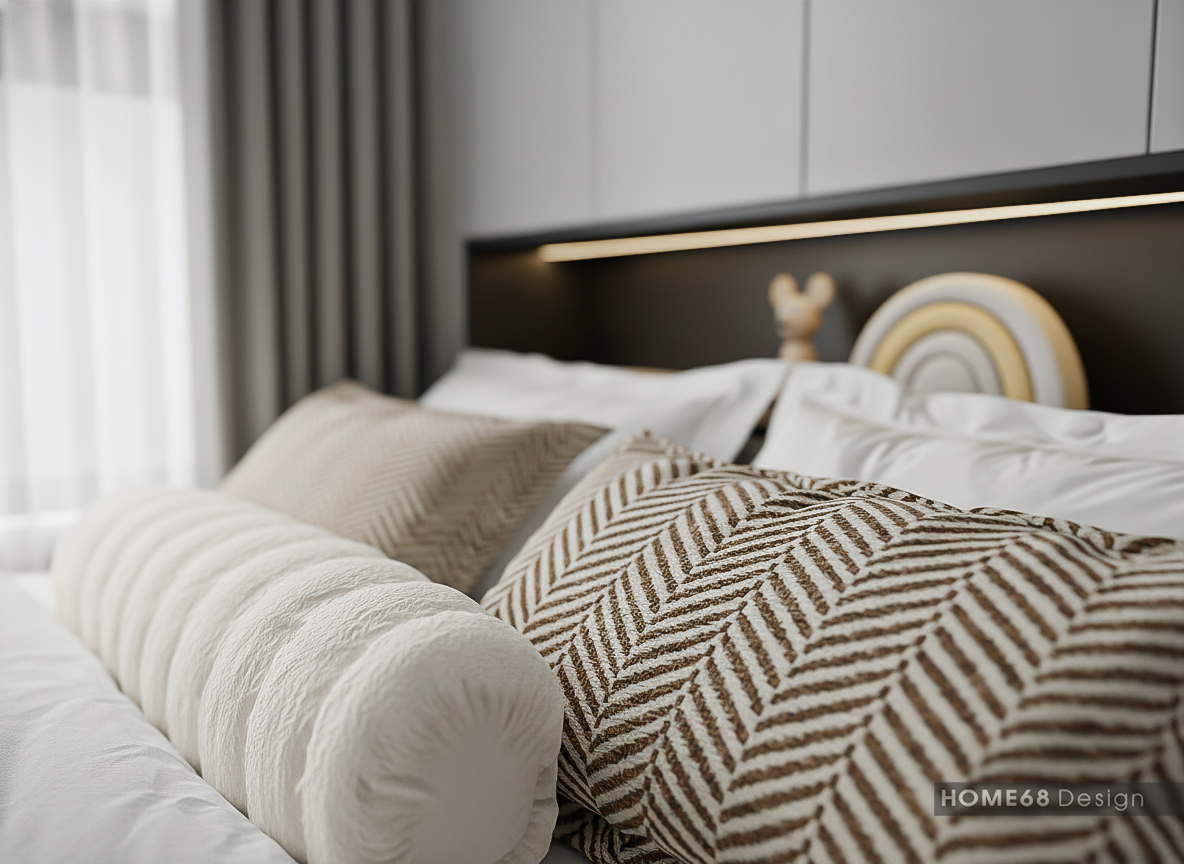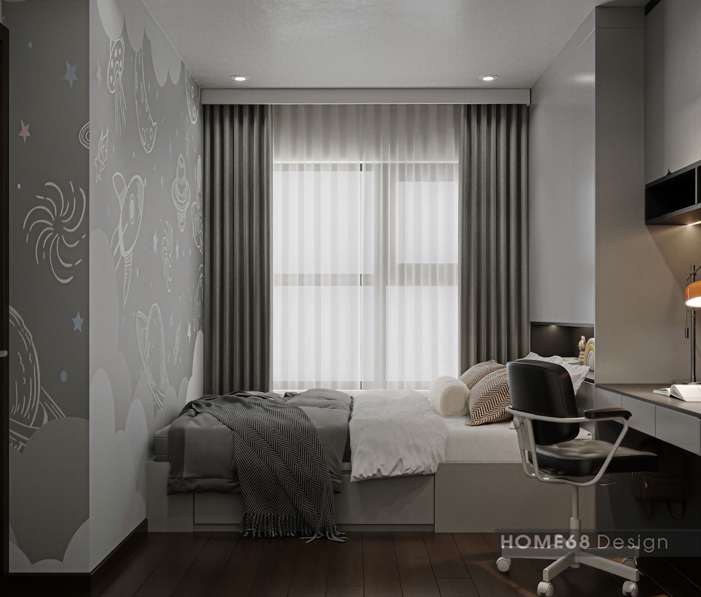 Thiết kế phòng ngủ con hướng tới khả năng thay đổi dễ dàng theo độ tuổi, giúp không gian có thể thích nghi lâu dài mà không cần cải tạo lớn, đồng thời vẫn giữ được sự hài hòa với tổng thể phong cách chung của căn hộ.