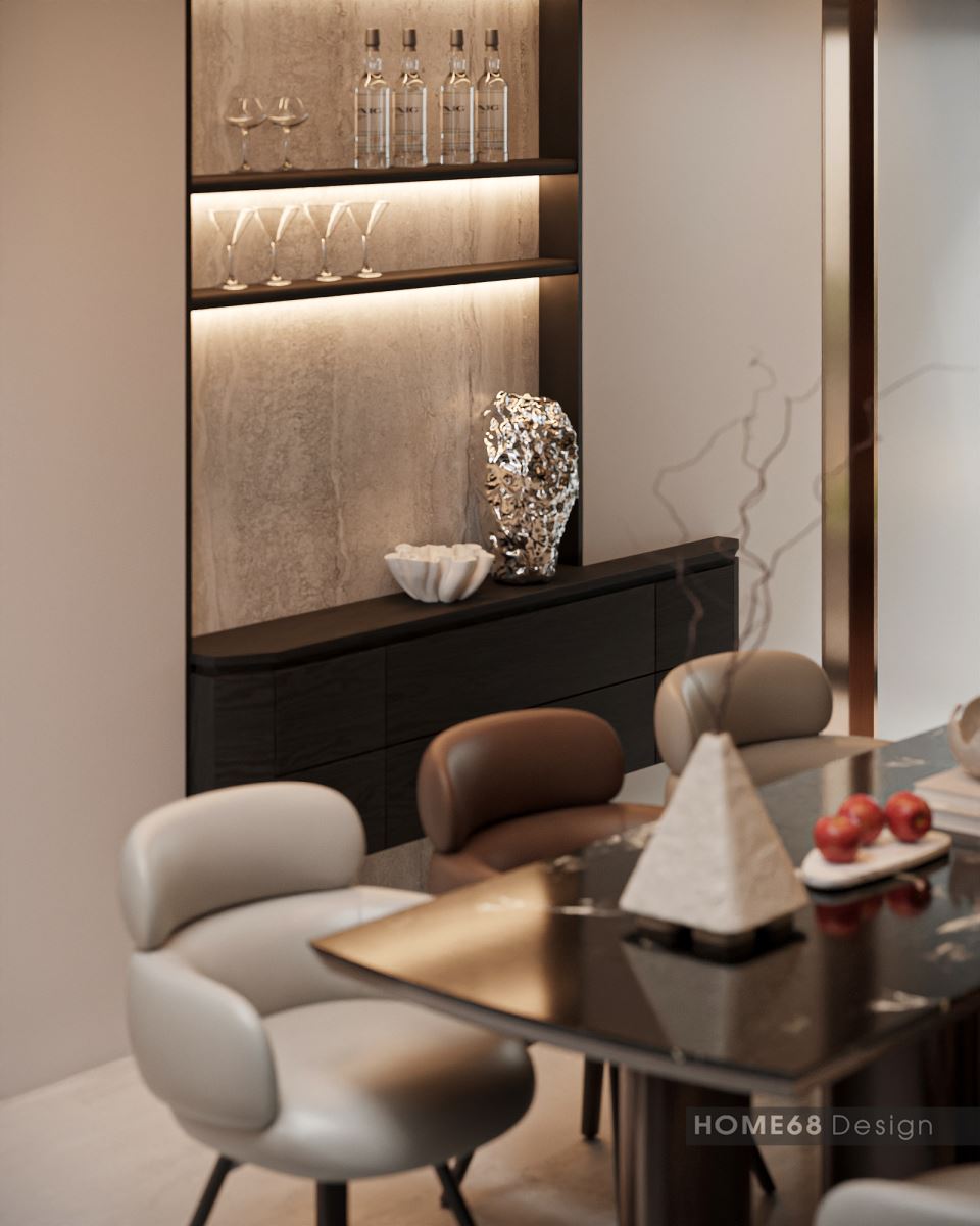 Tổng thể phòng khách không chỉ đảm bảo tính thẩm mỹ mà còn thể hiện rõ triết lý thiết kế của HOME68: tối ưu công năng - cân bằng ánh sáng - lựa chọn vật liệu bền vững. Đây chính là nền tảng tạo nên một không gian tiếp khách sang trọng, ấm cúng và phù hợp với nhịp sống của gia đình hiện đại tại đô thị.