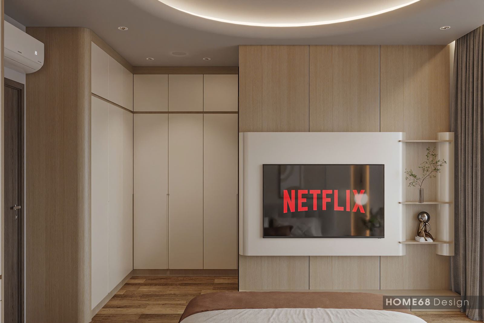 Phòng ngủ master với kệ tivi đơn giản nhưng hiện đại, tinh tế - HOME68