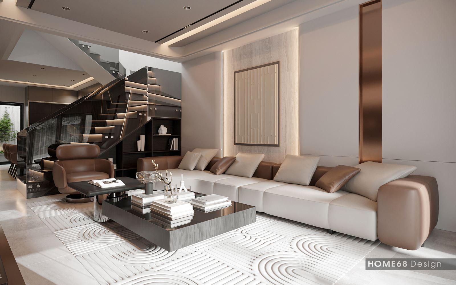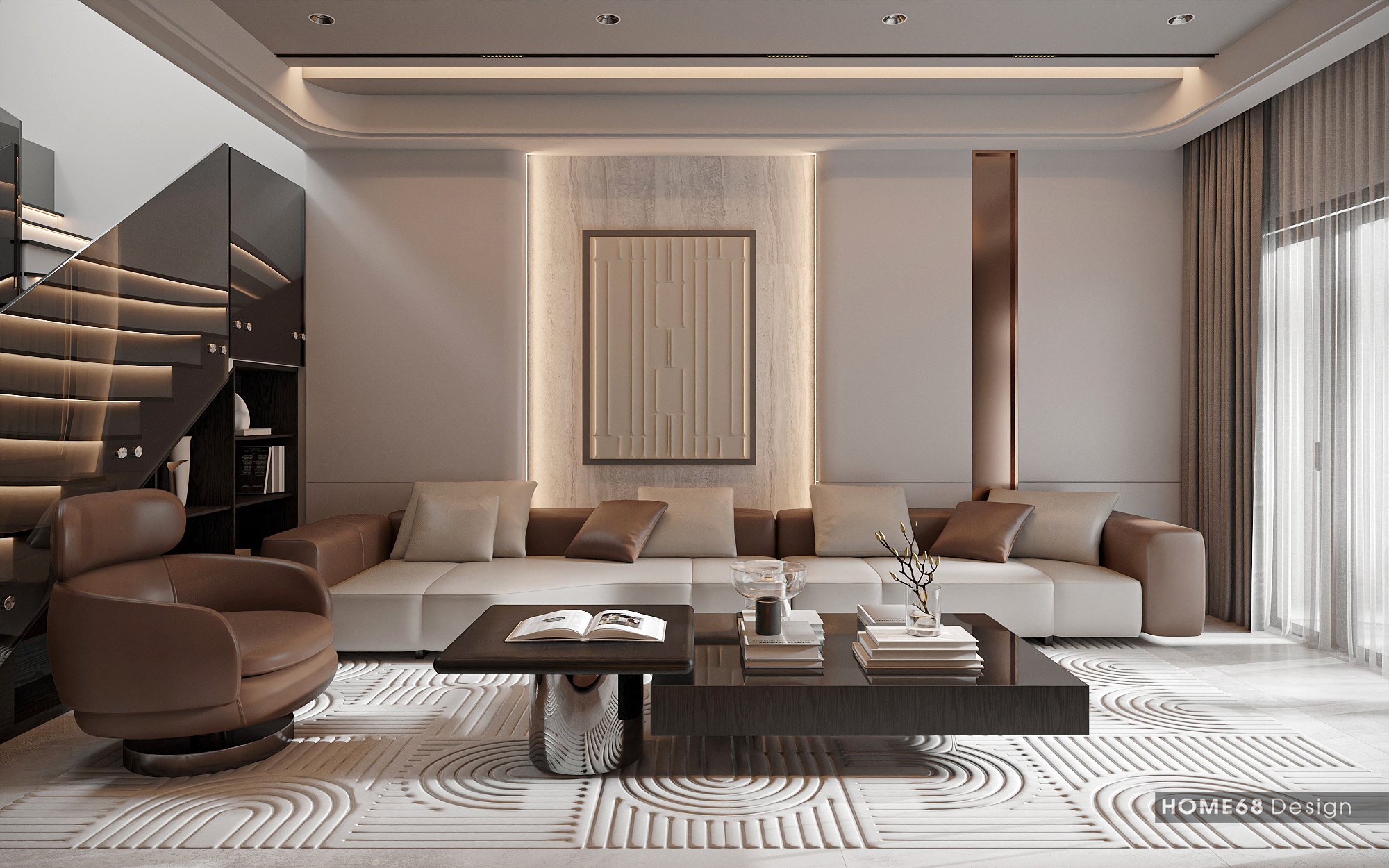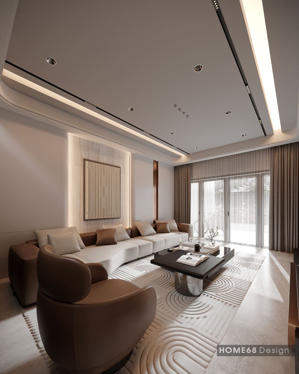 Tổng thể phòng khách không chỉ đảm bảo tính thẩm mỹ mà còn thể hiện rõ triết lý thiết kế của HOME68: tối ưu công năng - cân bằng ánh sáng - lựa chọn vật liệu bền vững. Đây chính là nền tảng tạo nên một không gian tiếp khách sang trọng, ấm cúng và phù hợp với nhịp sống của gia đình hiện đại tại đô thị.