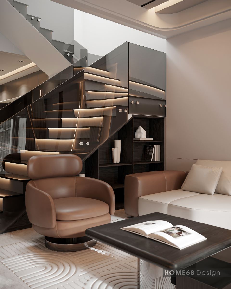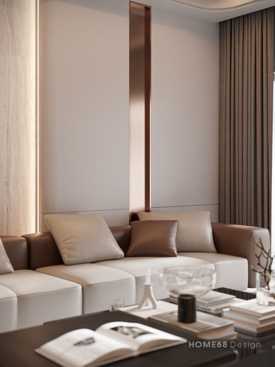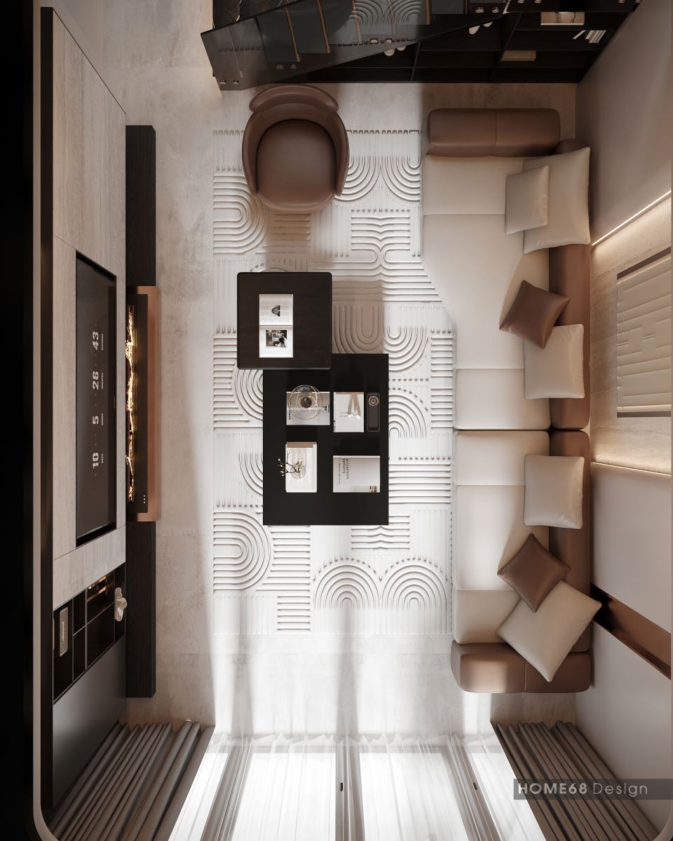 Tổng thể phòng khách không chỉ đảm bảo tính thẩm mỹ mà còn thể hiện rõ triết lý thiết kế của HOME68: tối ưu công năng - cân bằng ánh sáng - lựa chọn vật liệu bền vững. Đây chính là nền tảng tạo nên một không gian tiếp khách sang trọng, ấm cúng và phù hợp với nhịp sống của gia đình hiện đại tại đô thị.