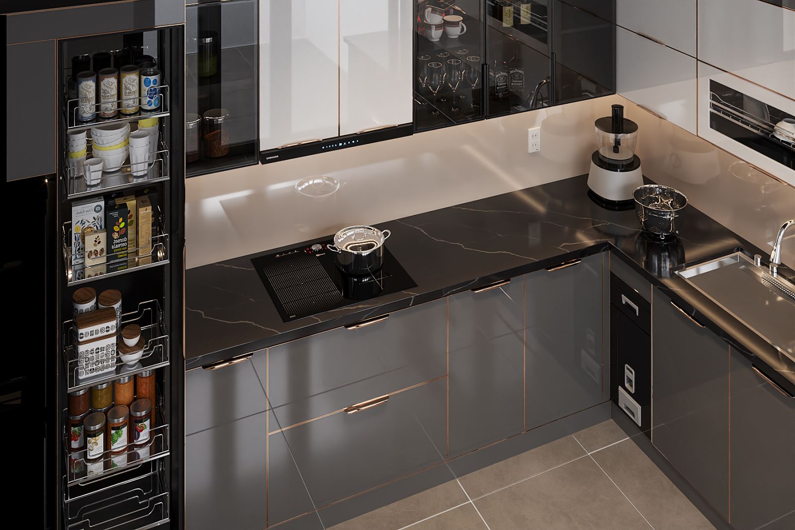Việc bố trí từng khu vực tủ bếp là rất quan trọng, bố trí thế nào phải vừa phù hợp với mục đích sử dụng, phát huy được hết công năng của tủ bếp, vừa đảm bảo yếu tố về mặt phong thủy. Hệ thống ngăn tủ thông mình bố trí các phụ kiện khoa học và ngăn nắp, gia đình sẽ có không gian rộng thoải mái để cất đồ dùng gọn gàng, tối ưu không gian sử dụng.