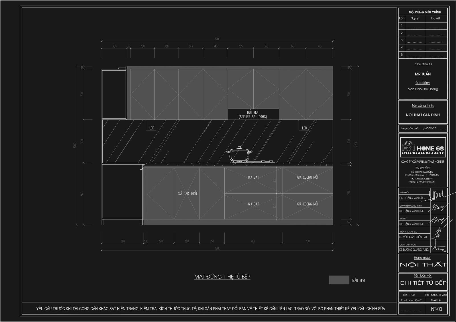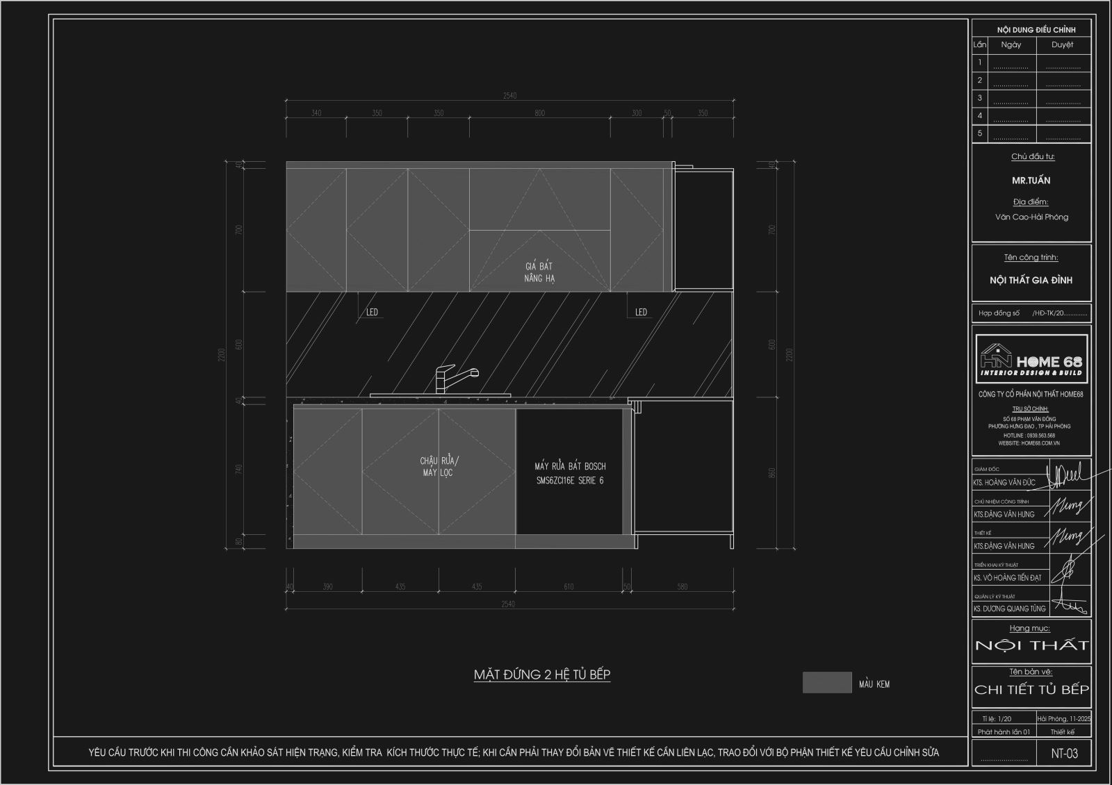 Không gian bếp của nhà anh Tuấn tại Văn Cao vừa được tân trang lại với mẫu tủ bếp khung inox 304 cánh kính hiện đại. Home68 đã hoàn thiện hệ tủ bếp cho gia đình anh Tuấn tại Văn Cao với tiêu chí: đẹp - bền - tối ưu công năng. Toàn bộ hệ tủ được thiết kế theo phong cách hiện đại, chú trọng vật liệu cao cấp và chi tiết hoàn thiện tỉ mỉ.